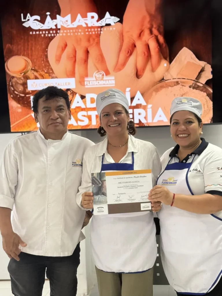 Tras cuatro días de formación, aprendizaje y práctica constante, realizamos la clausura del Taller de Panadería y Pastelería, organizado por la Cámara de Comercio de San Martín con el valioso apoyo de Fleischmann Perú. En esta jornada final se entregaron los certificados a los participantes que, con dedicación, desarrollaron nuevas habilidades en la elaboración de panes tradicionales y productos con identidad amazónica.